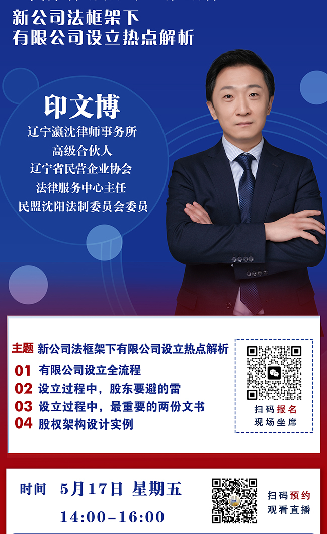 本期直播培訓(xùn)由遼寧瀛沈律師事務(wù)所印文博律師主講。印文博律師是遼寧瀛沈律師事務(wù)所高級合伙人,遼寧省民營企業(yè)協(xié)會法律服務(wù)中心主任,民盟沈陽法制委員會委員。
